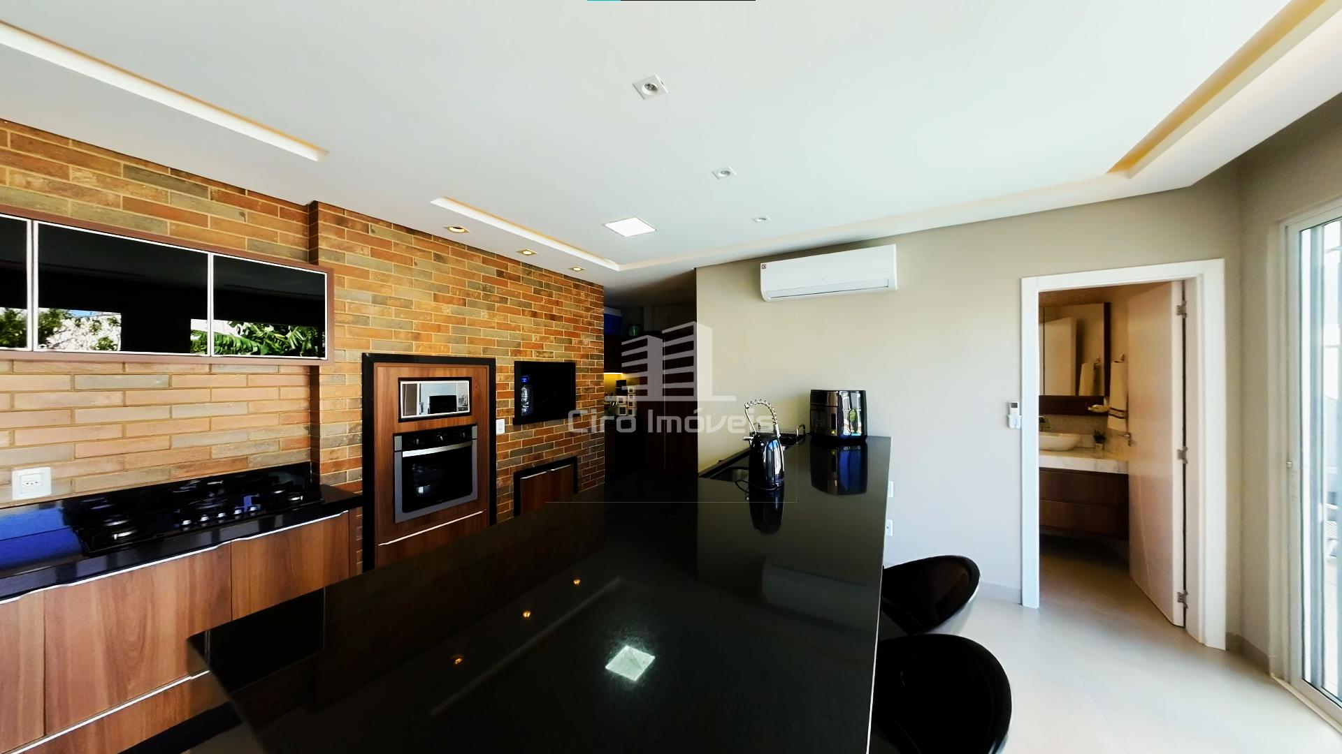 01 Espaço gourmet com sala de tv, churrasqueira e banheiro social