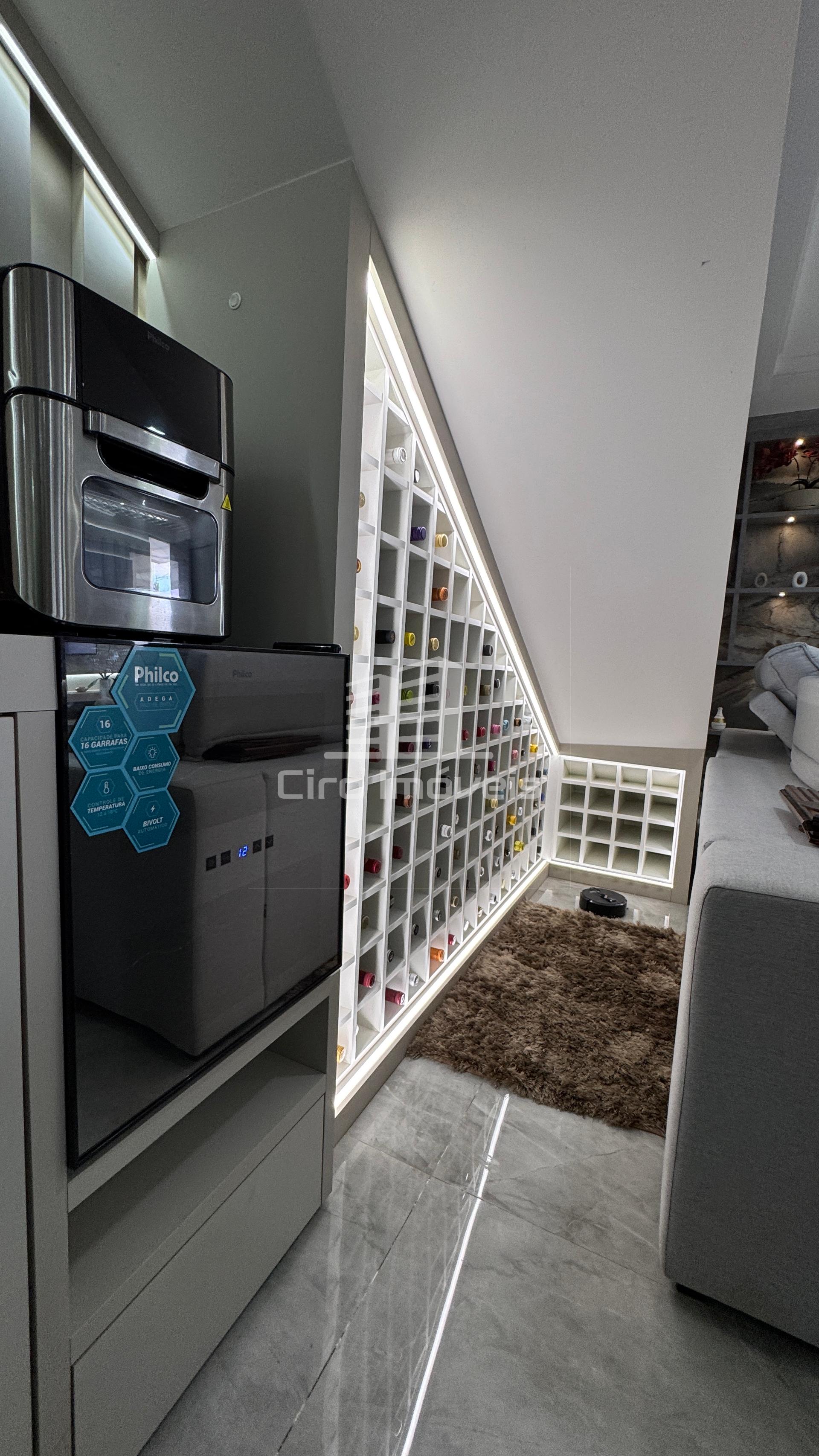 01 Sala para jantar com mesa com balcões e cristaleira e com adega porta garrafas e adega climatizada;
