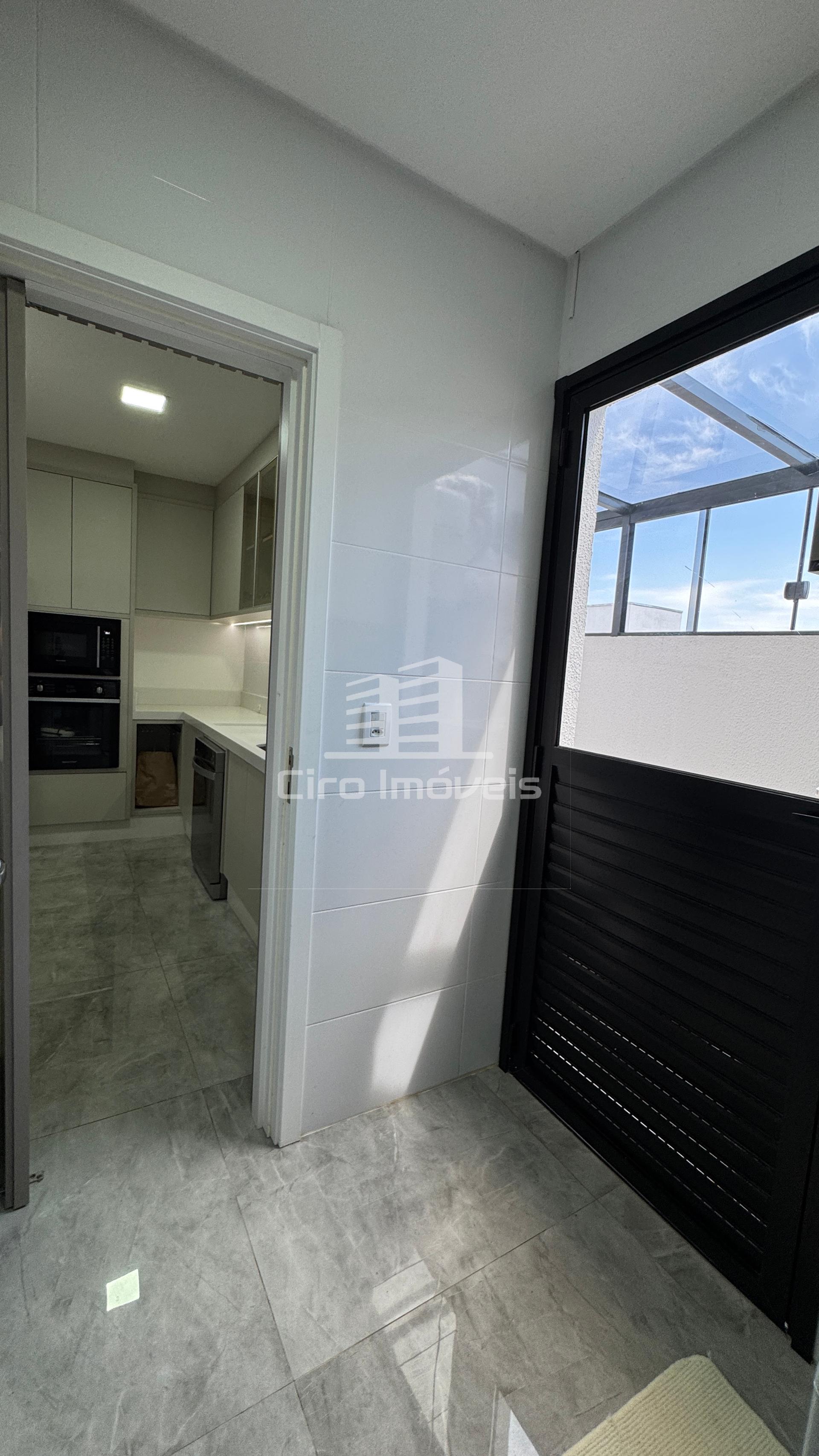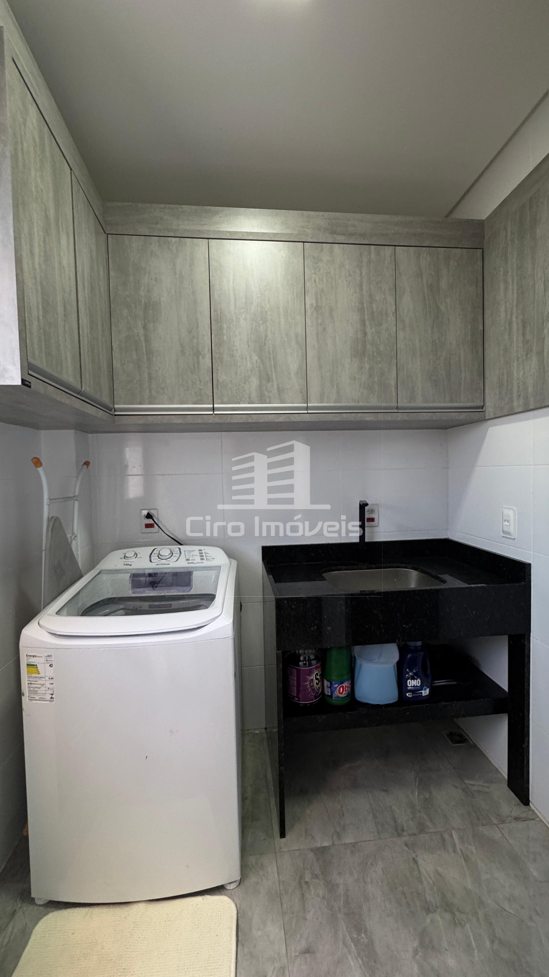 01 Lavanderia com armários sob medida, lavadora de roupas, tanque de pedra e ampla varando toda coberta por Vidro;